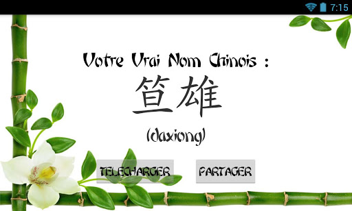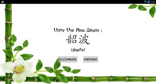 "Mon vrai nom chinois" est une application dévelopéé par Chine Informations sous Android et qui permet à quiconque d'obtenir un véritable nom "à la chinoise" comme il est de coutume dans le pays, avec sa calligraphie.