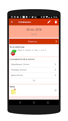- Gérer les entraînements en ajoutant les activités de la session avec la possibilité de télécharger des fichiers avec des explications d'exercice (pour les utilisateurs Premium)