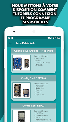 Grâce à cette application, vous pouvez contrôler les relais connectés à votre arduino ou connectés au module ESP8266 ou ESP32 ou similaire. Vous pouvez ajouter autant de relais que vous le souhaitez à partir du même module ou de modules différents. Le code est inclus dans l'application pour pouvoir le charger dans l'IDE Arduino et le schéma de connexion entre l'ESP et les relais.