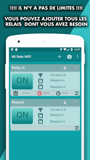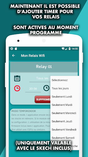 Il est maintenant possible d'ajouter des minuteries indépendantes à vos relais. Définissez le jour, l'heure d'activation et de désactivation et votre relais s'activera à l'heure programmée.