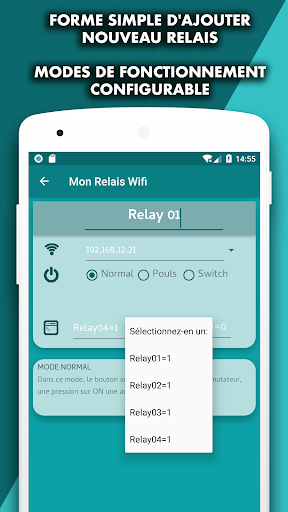 Il est possible de modifier le bouton qui régit le relais afin qu’il envoie PULSES dans un intervalle que vous pouvez préfixer. (uniquement si le firmware inclus dans l'application est utilisé ...)