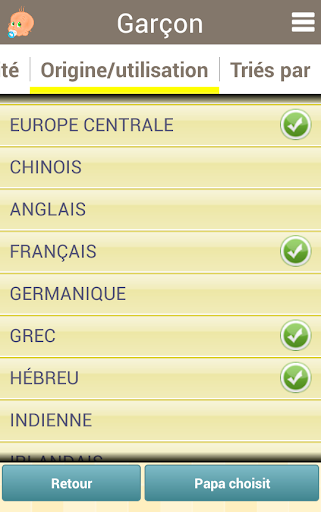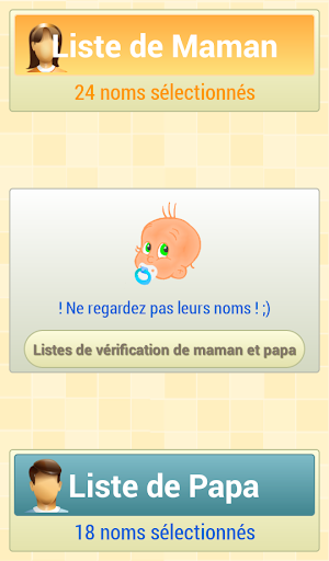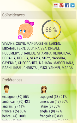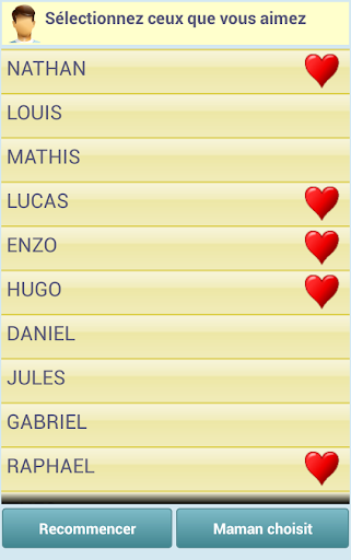Une fois sélectionnée, fille ou garçon, nous allons obtenir une liste de noms où Maman et Papa aussi bien séparément choisissent leurs favoris.