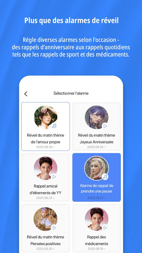 Des alarmes matinales aux diverses alertes quotidiennes, la voix de ton kpop bias t'aidera à passer la journée en compagnie de sa charmante voix.