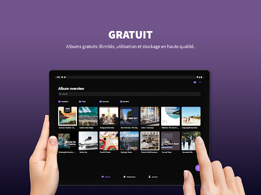 - Gratuit: Les photos et les vidéos sont stockées gratuitement en haute qualité. Stockez les originaux avec Premium, essayez gratuitement pendant 30 jours.