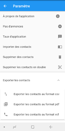 Vous pouvez exporter vos contacts au format pdf et csv.