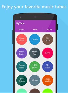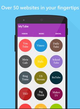 Do you want to have access into all your favorite websites and music tubes in a few taps, fast and without opening many websites? Then this app is for you, MyTube Player is the best free modern app that will simplify your life, we will give you the access to over 50 websites like Youtube, Vimeo, vine, veoh, godtube, youku, Ted, bigthink, funnyordie and more as well as some Music websites to enjoy listening your favorite music tubes... You can also watch Live Tv channels and visit your favorite social websites like Facebook, Twitter and many more, right on your Mobile phone.