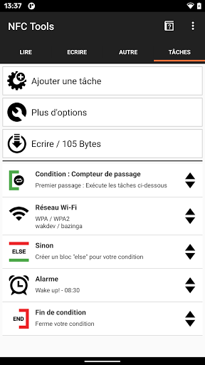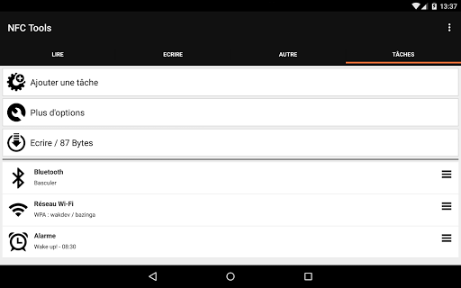 - Pour exécuter des tâches, vous avez besoin de l'application gratuite : NFC Tasks.