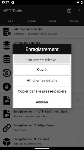 NFC Tools est une application qui vous permet de lire, écrire et programmer des tâches sur vos tags NFC et autres puces NFC compatibles.