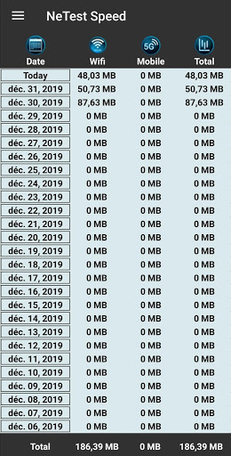* Statistiques séparées pour le réseau mobile et le réseau WiFi.