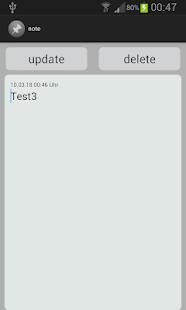Mit dieser App kannst du deine Notzen speichern. Die Daten werden in der smartphone-eigenen SQLite Datenbank gespeichert. Die App ist einfach, unkompliziert und selbst erklärend.