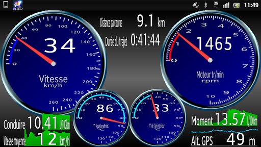 Votre appareil Android devient la jauge de votre voiture. Vous pouvez regarder les informations de votre véhicule en temps réel. Le "OBD Driver" peut afficher 56 types d'informations. Chacune représentée par une lettre et un graphique. Vous pouvez modifier les informations affichées à l'écran. De plus, vous pouvez personnaliser la jauge en choisissant les couleurs des lettres et du graphique et l'arrière-plan via la fonction "personnalisation". La conduite de la voiture devient plus amusante.