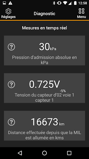 ✅ Affichage en temps réel des données et capteurs du véhicule et sauvegarde possible :
