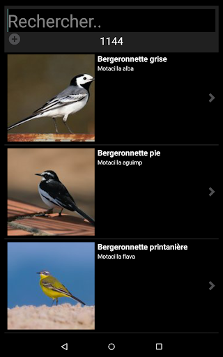 L'application contient plus de 3200 photos, 29'000 fichiers sons en streaming et 2500 vidéos Youtube également en streaming des 350 espèces les plus courantes. Vous pouvez aussi simplement inclure vos propres ressources (images ou sons). En plus de la recherche par nom, l'application permet la recherche par apparence et possède un Ornitho-Trainer pour vous entraîner à reconnaître les oiseaux les plus communs.