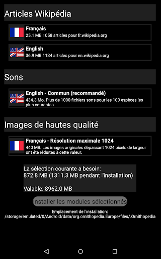 - Articles Wikipédia hors ligne dans une ou deux langues au choix ( 3-50 MB chacune, la taille exacte dépend de la langue sélectionnée)