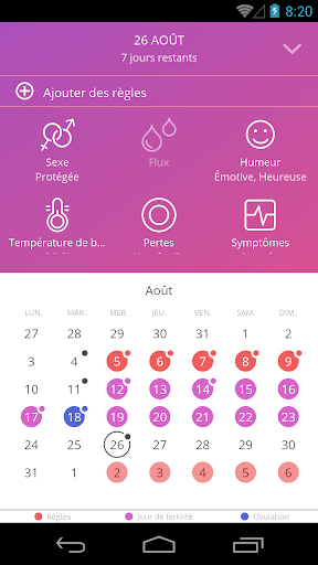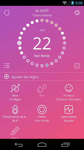 L’application vous propose un calendrier, des méthodes de suivi de température et de l’activité de l’utérus durant tout votre cycle, grâce auxquelles vous pourrez déterminer avec précision le début de votre période de fertilité et votre ovulation.