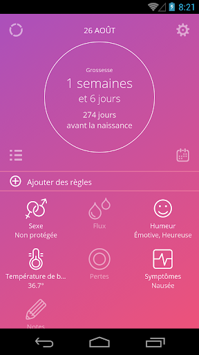 8. Avoir un suivi de la durée de votre grossesse en renseignant le nombre de semaines et de jours avant la naissance, vos variations d’humeur, vos symptômes, et toute autre note;