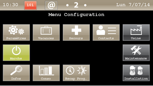 L’application PAC User Control offre les mêmes fonctionnalités que l’application de l’écran tactile de votre PAC, à savoir :