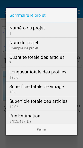 •Prix Estimation de la projet conforme à Produits consommable en résumé et séparément