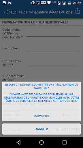 • Nouveau processus automatisé de transmission des codes d’autorisation pour les réclamations de type 7 (geste de bonne volonté du service d’assistance aux consommateurs) et de type 8 (garantie de satisfaction Michelin de 30 jours). Aucun appel téléphonique requis pour les réclamations créées dans l’application.