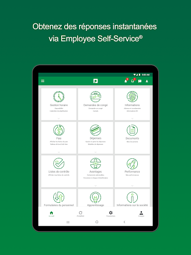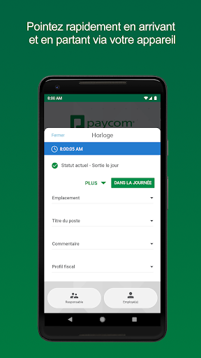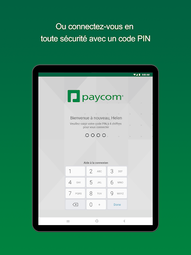 Spécifiquement destinée aux employés qui utilisent déjà la technologie RH de Paycom au travail, l’application Paycom met désormais la puissance de sa technologie Employee Self-Service à disposition des employés sur leur appareil mobile. Veuillez noter que certaines fonctionnalités de Employee Self-Service doivent être activées par l’administrateur Paycom de votre organisation. Si vous avez des questions sur ces fonctionnalités, veuillez contacter votre service RH.