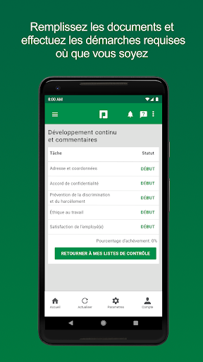 Plus besoin de chercher des formulaires papier égarés ou d’essayer de vous souvenir du détail des politiques de l’employeur. Affichez, signez électroniquement et remplissez facilement les listes de contrôle et les formulaires professionnels dans l’application. Les documents peuvent être stockés et récupérés facilement à tout moment si besoin est.