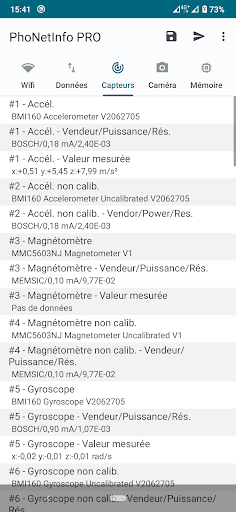 - Infos Capteurs: Nom, vendeur, etc. (hygromètre, baromètre, magnetomètre, luxmètre, etc.)