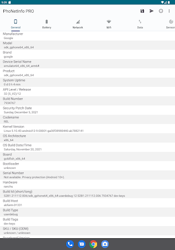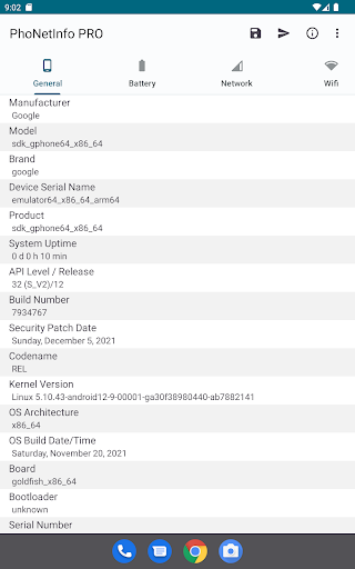 PhoNetInfo affiche des infos détaillées de téléphone mobile et de réseau. Par exemple: Micrologiciel, date de fabrication, modèle de l'appareil, température de la batterie, détails des capteurs, operateur du réseau, intensité de signal, ID de cellule, détails du wifi, détails de la caméra, détails du mémoire, détails du SOC, etc.