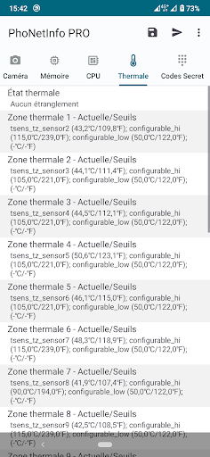 - Infos Thermal: Zones thérmales, températures act. et trip points, etc.