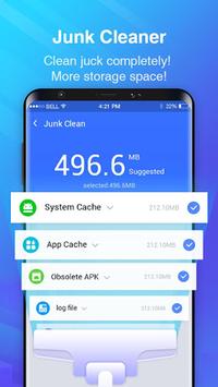 Junk Cleaner: Scans all system cache, app cache, log files, temp files and apk obsolete files and recommends removing them from your phone, freeing up memory and running your phone faster than