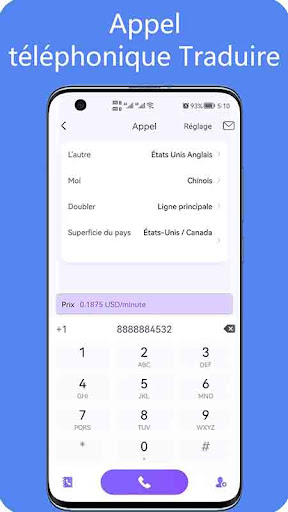 Cette application prend en charge 119 langues et peut appeler plus de 200 pays.