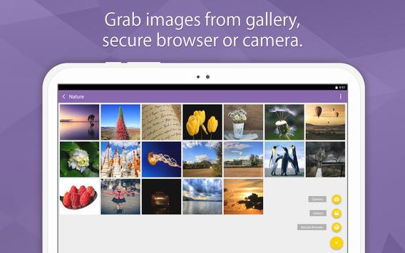 Import desired pictures from the gallery, device’s camera or download them directly from the built-in private browser.