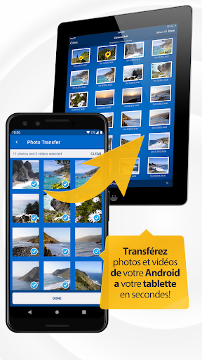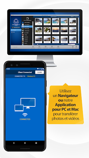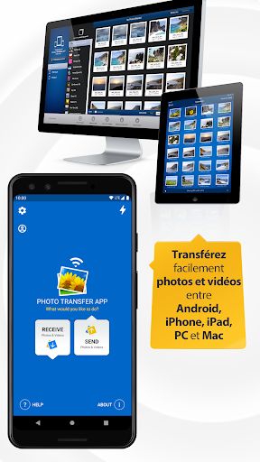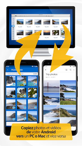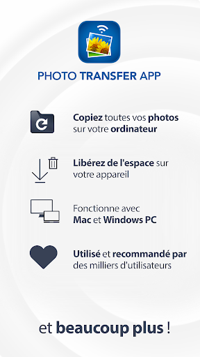 Cette appli de transfert de photos vous permet de transférer, partager et sauvegarder facilement des photos et des vidéos de votre appareil Android vers votre ordinateur, ainsi que d'échanger des photos à partir d'un autre Android, iPhone ou iPad (et vice versa) via votre réseau Wi-Fi.