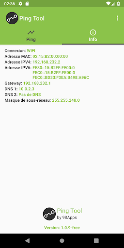 Utilisez le ping sur les adresses IPv6 ou IPV4 (IPV6 sur Android 8.1 ou inférieur);