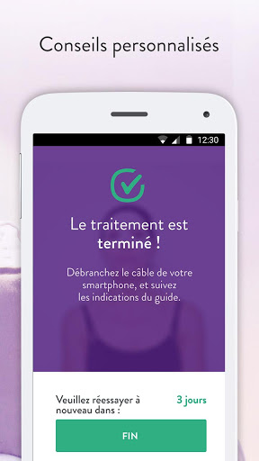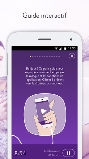 Contenus de l'application : un guide pratique et rapide à consulter avant, pendant et après le traitement. La fonction miroir permet d'appliquer aisément votre masque pour le visage où que vous vous trouviez. Feedback visuel et vibration lorsque le traitement commence et s'arrête.