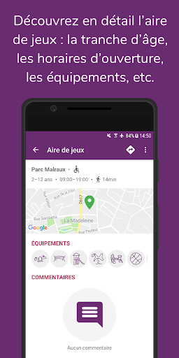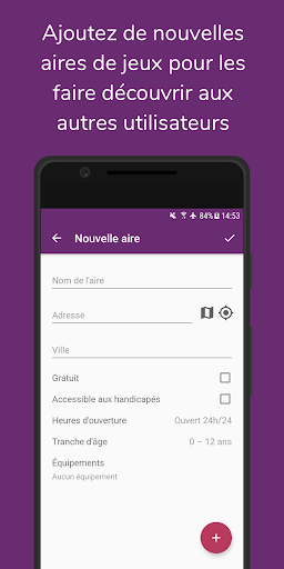 Vous aussi, si vous connaissez ou découvrez une aire de jeux qui ne se trouve pas encore sur la carte, ajoutez-la pour que les autres utilisateurs puissent la découvrir à leur tour et en profiter.