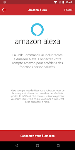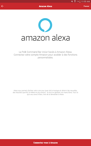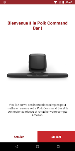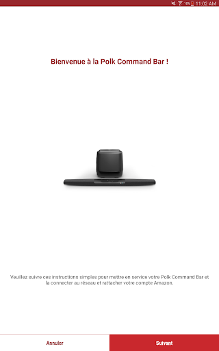 Il vous aidera à connecter votre Polk Command Bar à votre réseau Wi-Fi et à relier votre compte Amazon afin que vous puissiez utiliser les services vocaux Alexa.