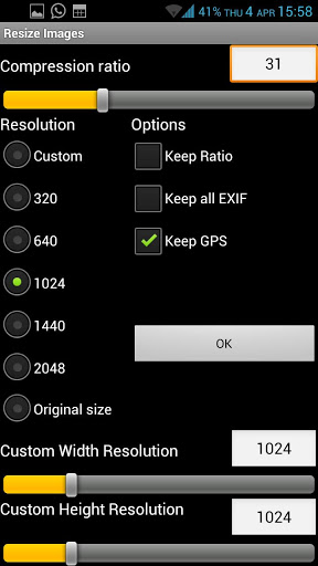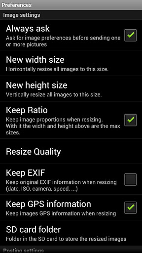 - Autoresize images received to the SD card. You can keep or not GPS or EXIF information and compress (to reduce file size).