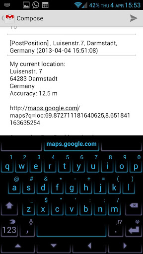 You can also simply start PostPosition and send your position to you friends via SMS, gTalk, Mail, Skype, Line, Tango or WhatsApp.