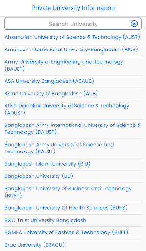 Liste des universités privées du Bangladesh Informations d'admission Programmes Éligéralités d'admission Directives d'admission Frais de scolarité ou Coût Contact