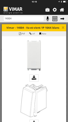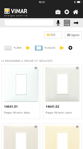 L’Appli Produits Vimar permet d'obtenir toutes les informations sur chaque produit en temps réel et en synchronisation avec le site officiel:
