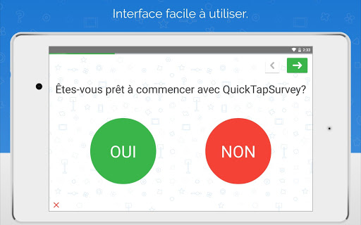 2) Télécharger votre sondage sur l'application QuickTapSurvey de votre tablette et COLLECTEZ vos réponses avec ou sans connection internet.