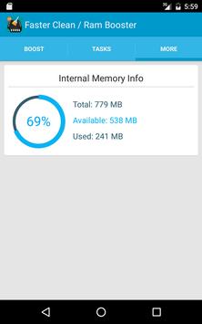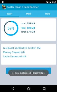 You can boost your RAM with single touch. Touch boost button and clear running process.