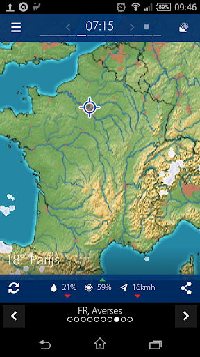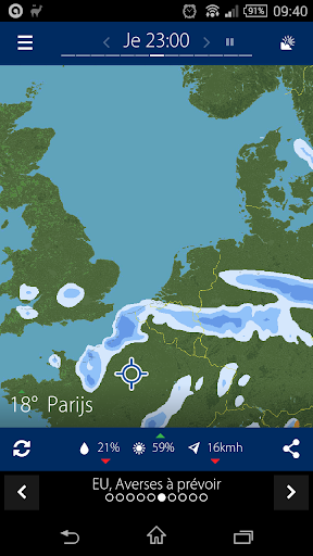 Alertes météo pour l'Europe. L'application de sat24.com vous avertit de l'arrivée de précipitations (pluie ou neige par exemple) par une alerte configurable.
