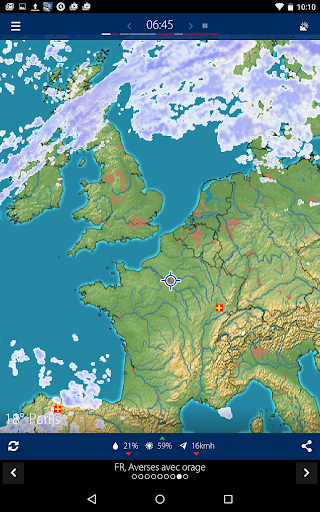 L’application gratuite de meteox.fr vous permet de retrouver sur votre téléphone ou tablette Android radar des precipitations France et satellite de la France et d'autres pays Européens.