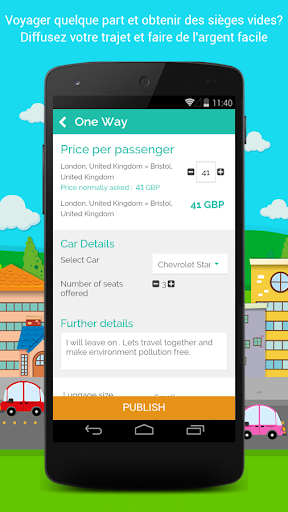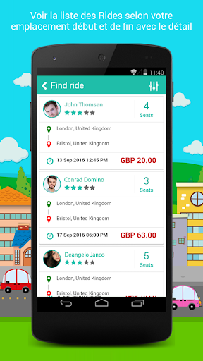 Grâce à cette application vos membres peuvent poster des promenades quand ils voyagent d'un endroit à un autre endroit. Les passagers peuvent rechercher et filtrer les manèges et réservez celui qu'ils préfèrent . Le mode de paiement peut être défini comme en ligne ou hors ligne selon les options sélectionnées . Les applications peuvent être personnalisés pour avoir votre monnaie locale et la langue aussi.