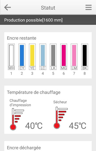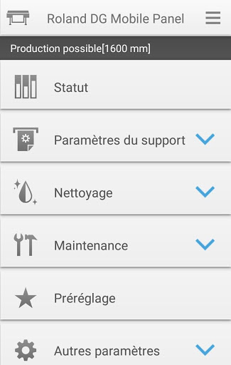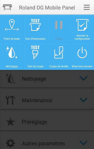 Outre un panneau de contrôle intégré, un nouveau Roland DG Mobile Panel vous autorise à réaliser des fonctions du panneau de contrôle de l'imprimante/des couteaux à partir de votre Smartphone ou de votre Tablette en utilisant une connexion Bluetooth. Cette nouvelle fonctionnalité innovante propose une interface riche directement sur votre imprimante ou, à distance, à proximité de cette dernière. Recevez des mises à jour de statut et gérez à distance les fonctions de production, d'impression test et de nettoyage.