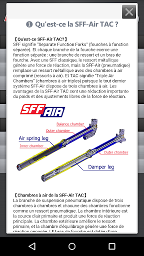 *Cette application est juste un outil vous permettant de configurer votre SFF-Air TAC. Elle ne garantit pas la performance optimale de votre moto.