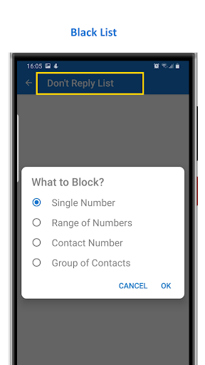 ✔ Liste personnalisée - contacts / groupe de contacts que vous souhaitez répondre avec un message texte personnalisé