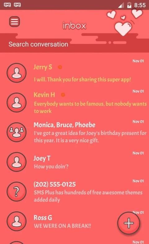 Are you bored of your old and monotonous theme? Text with style and add a personal touch to your phone by replacing your dull, default SMS layout with this great love theme. Make the smart choice and get the new SMS Pink Love. Give your standard SMS app a trendy new look and send messages in style!