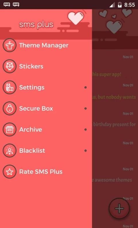 Customize your device with SMS Pink Love. This theme has a red background with lovely elements. Feel the love and let your phone screen to be unique!